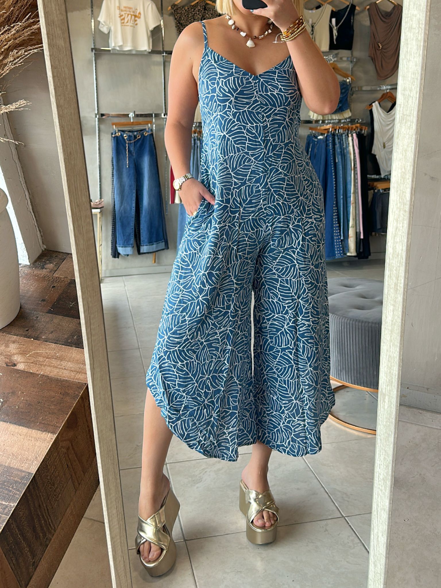 Kami Leaf Print Jumpsuit