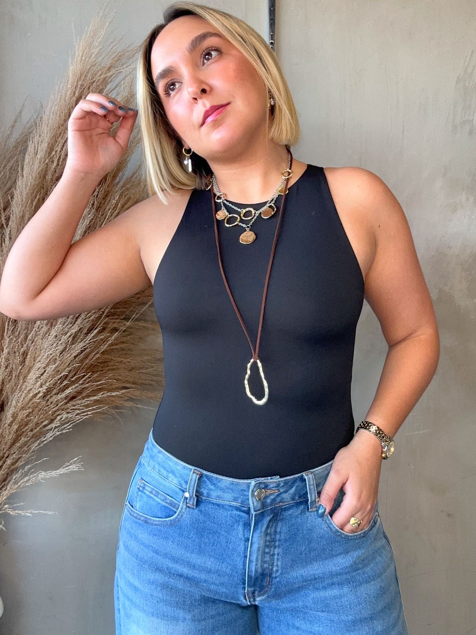 Lynn Black Halter Bodysuit