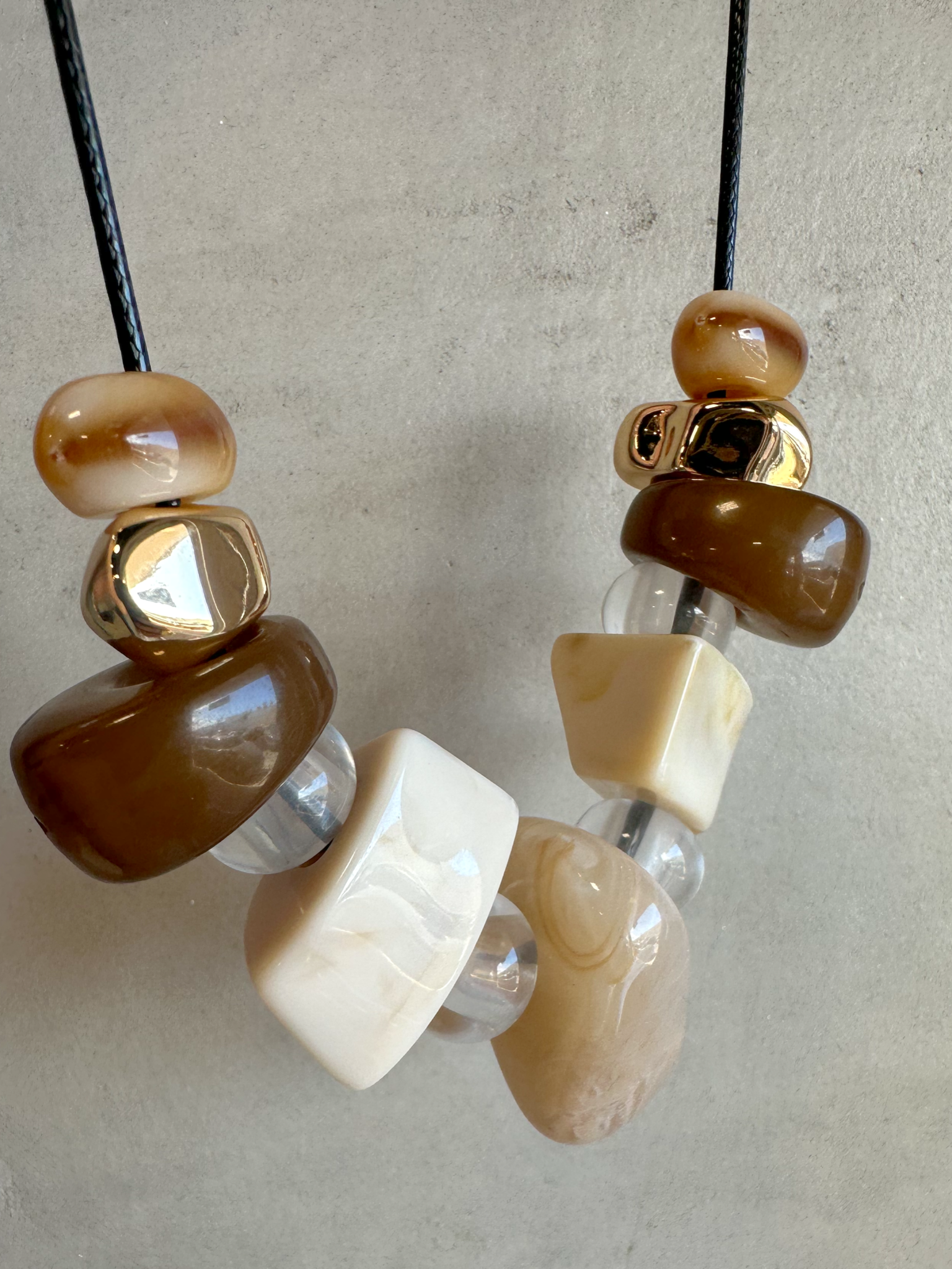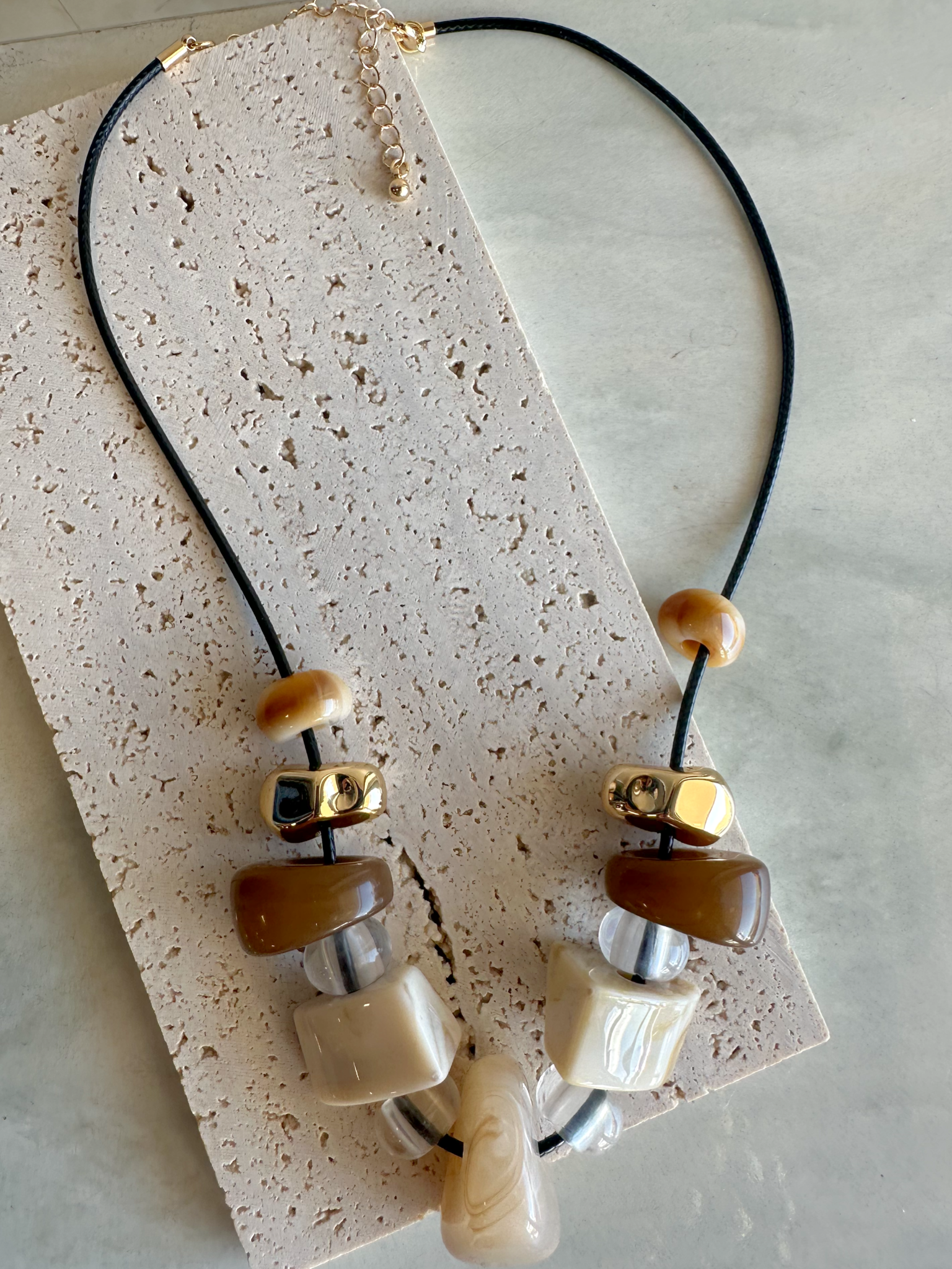 Multi Stones Black Cord Necklace