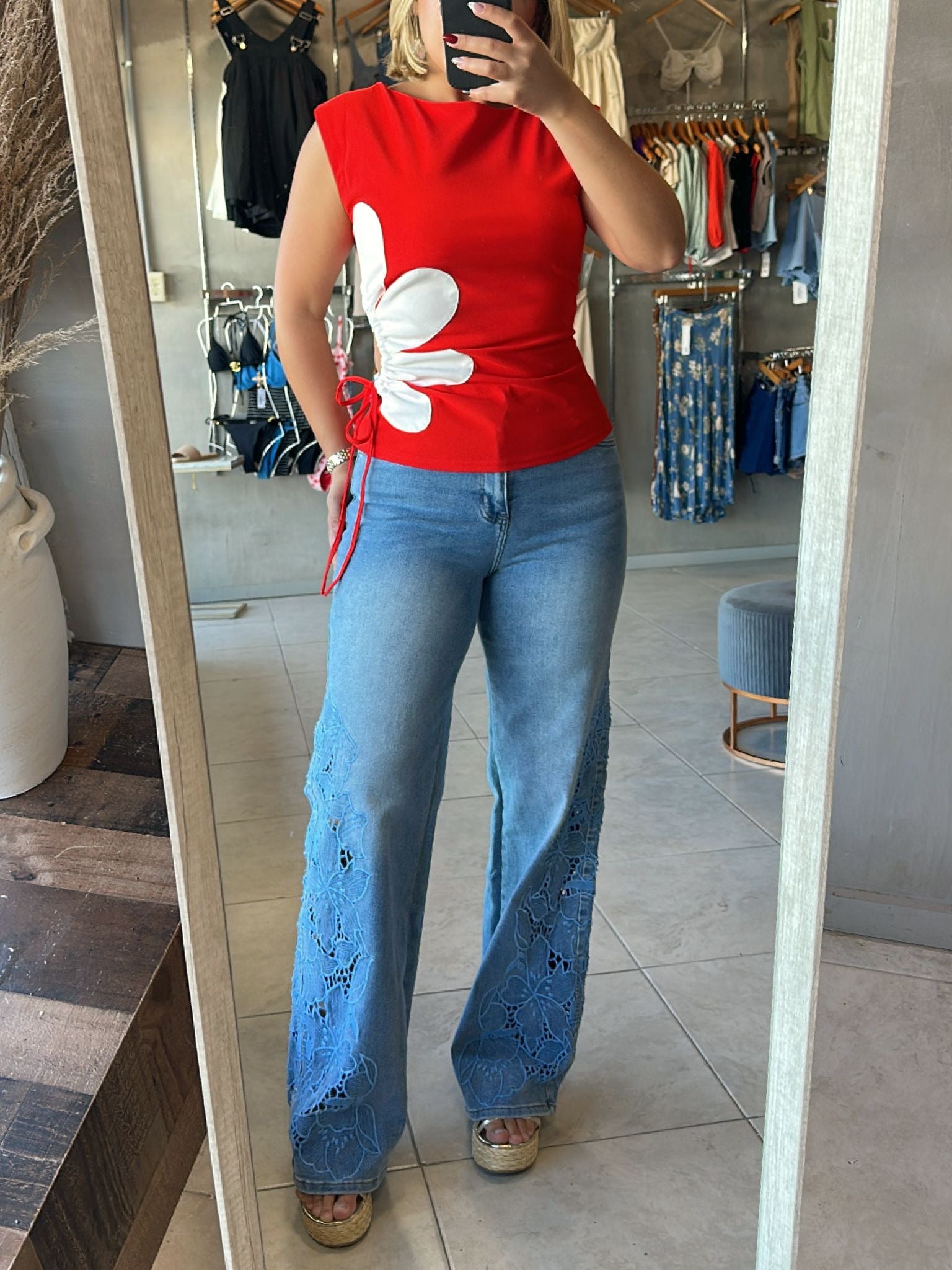 Red Floral Top