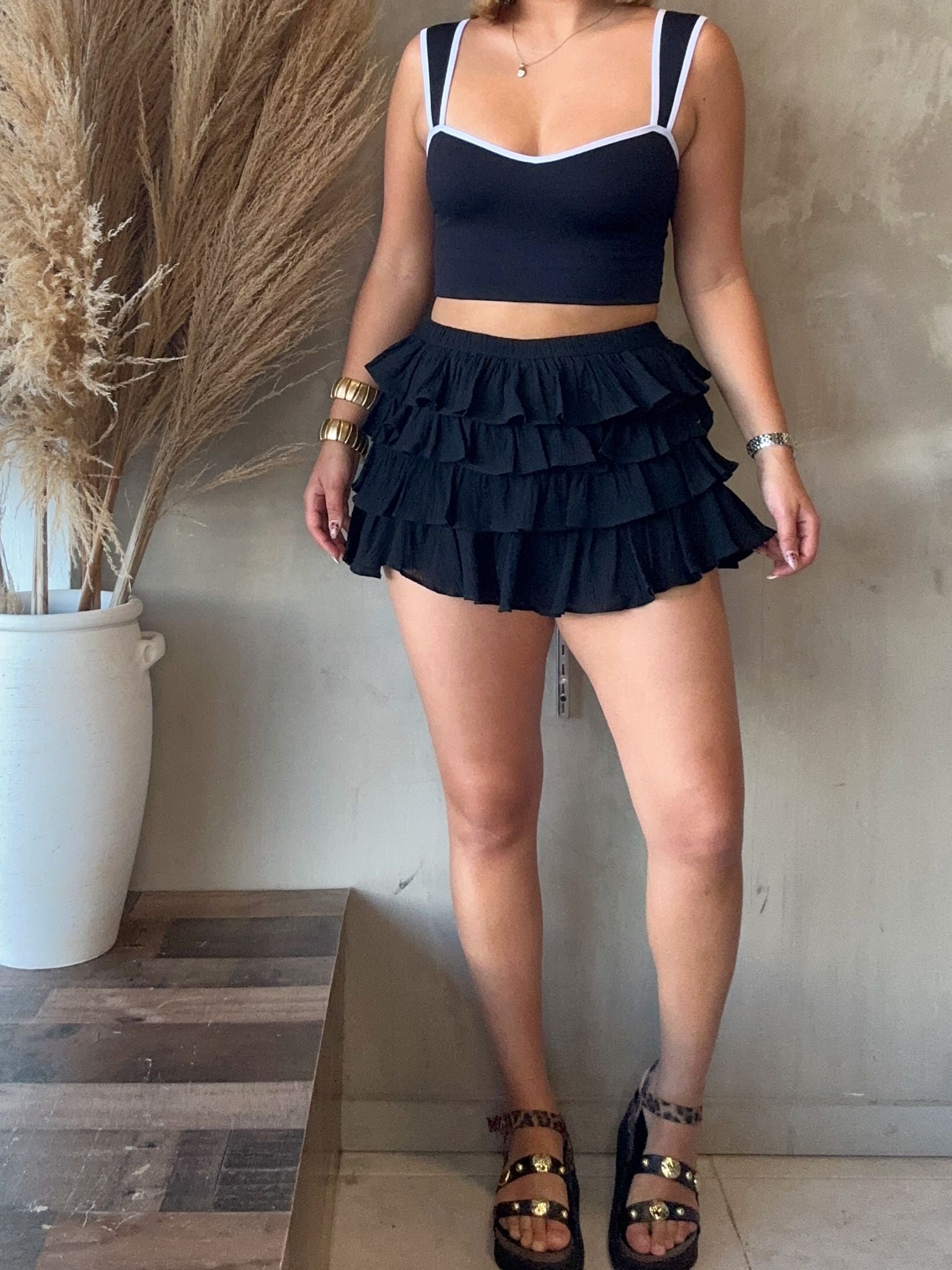 Iris Black Ruffled Short