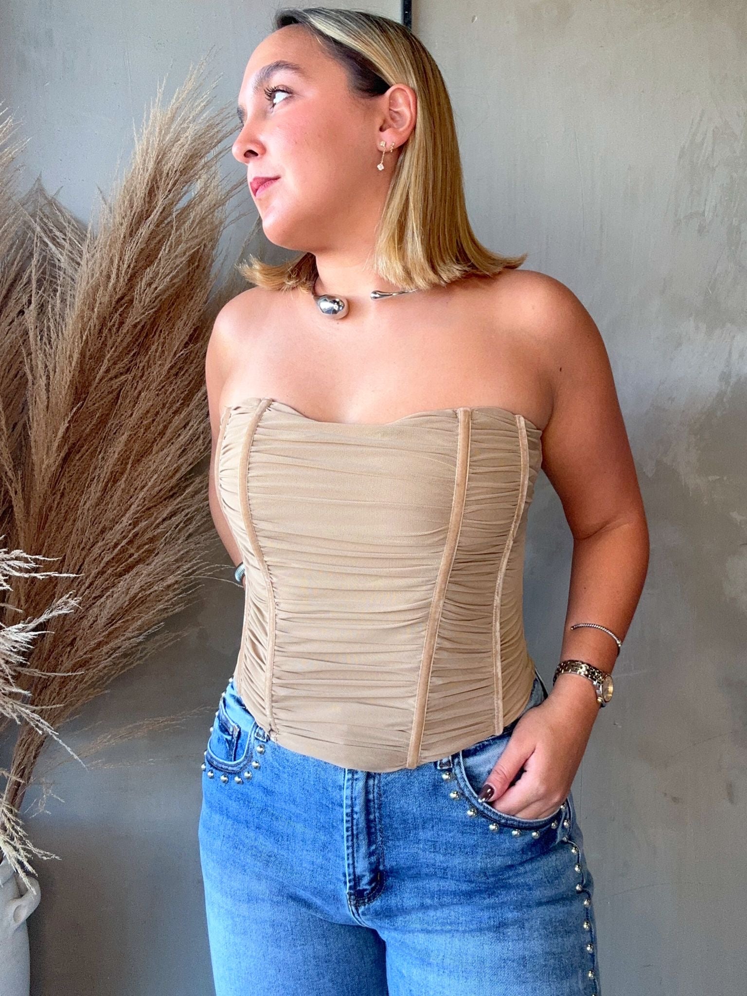 Anne Beige Corset Top