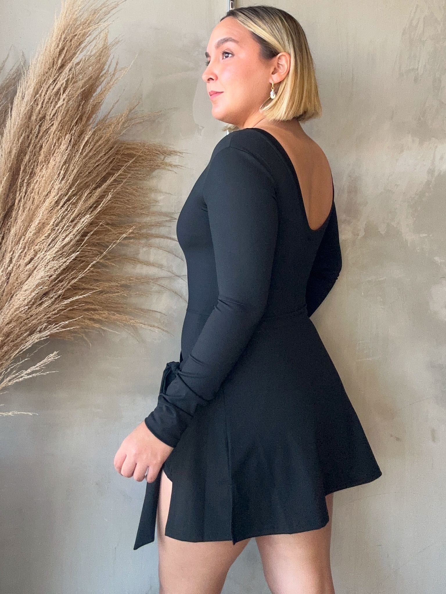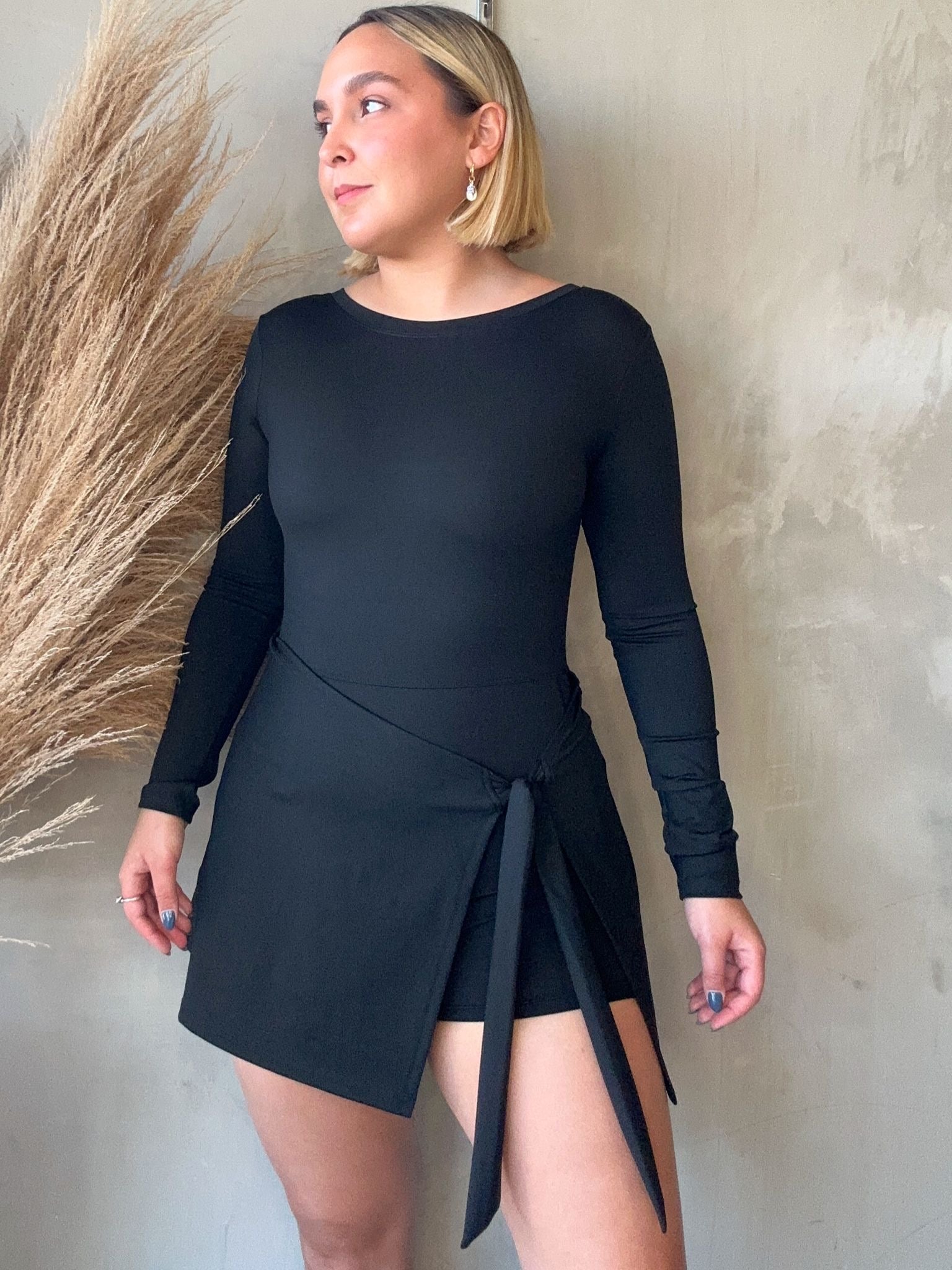Aryna Black Long Sleeve Active Dress