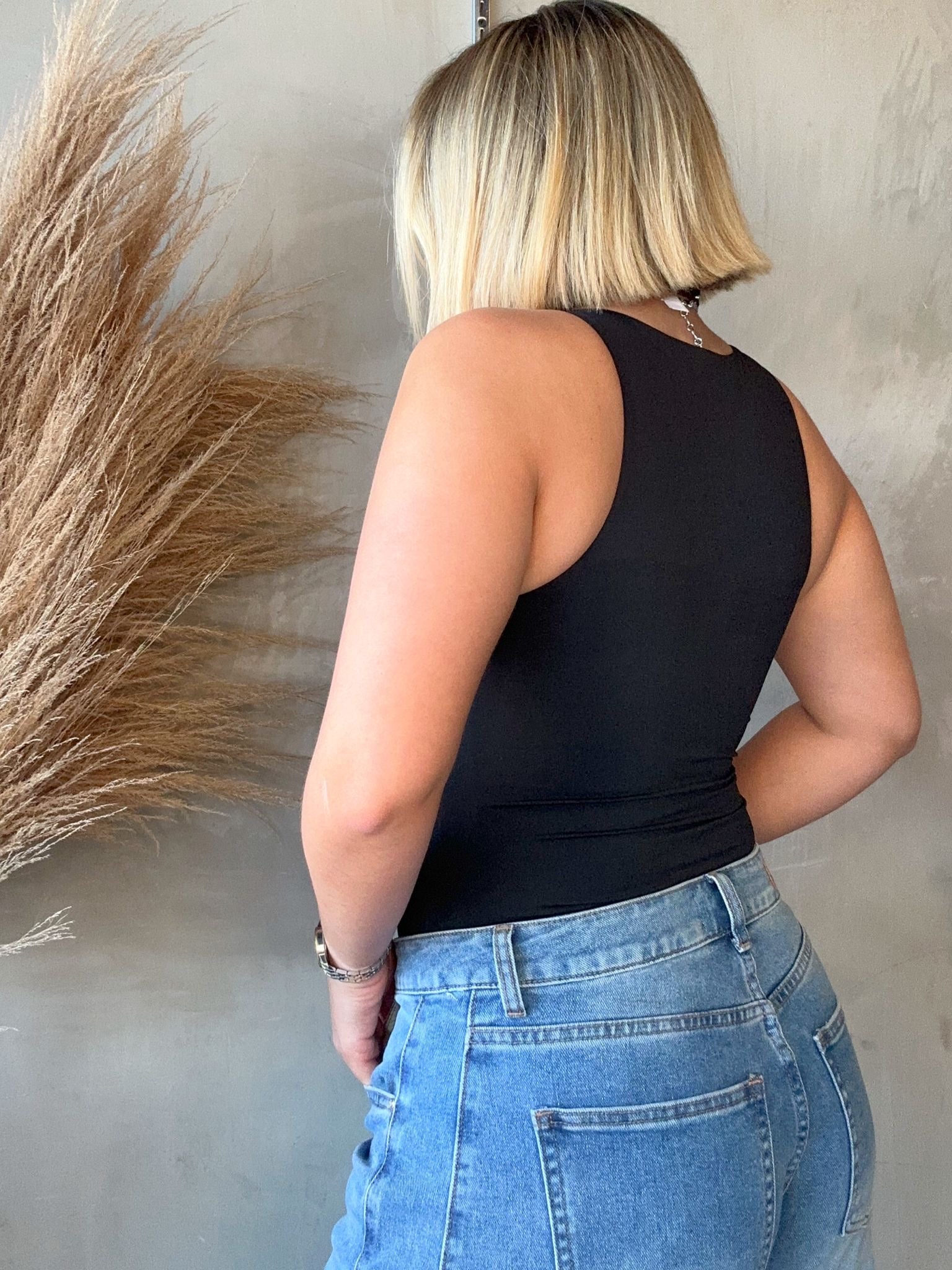Lynn Black Halter Bodysuit