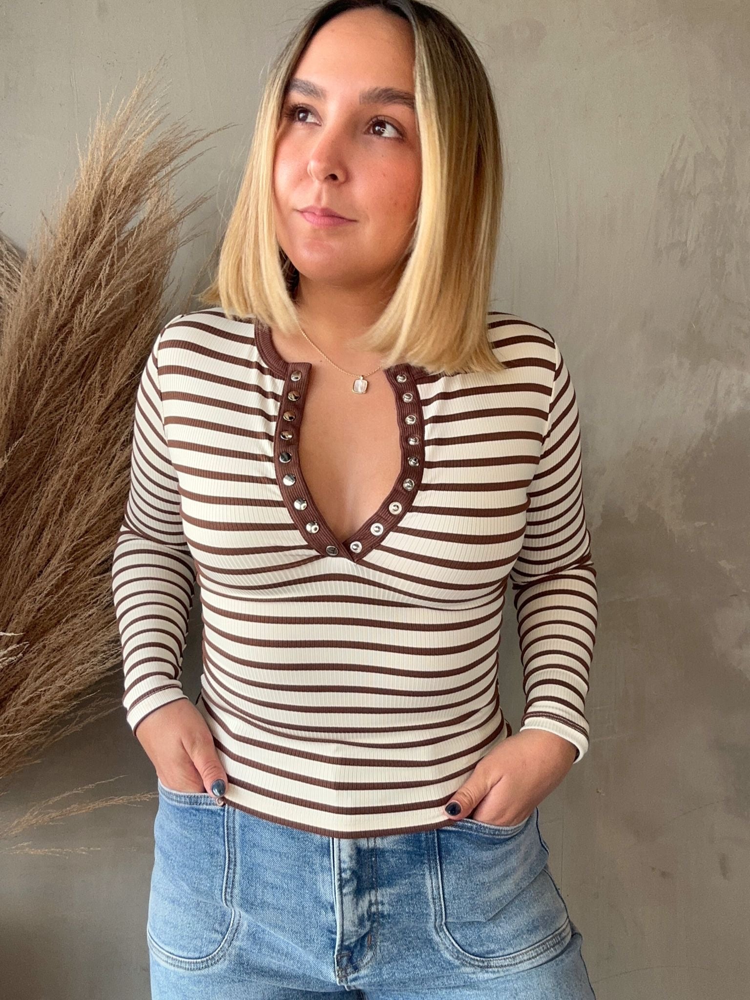 Katalina Brown/White Striped Top