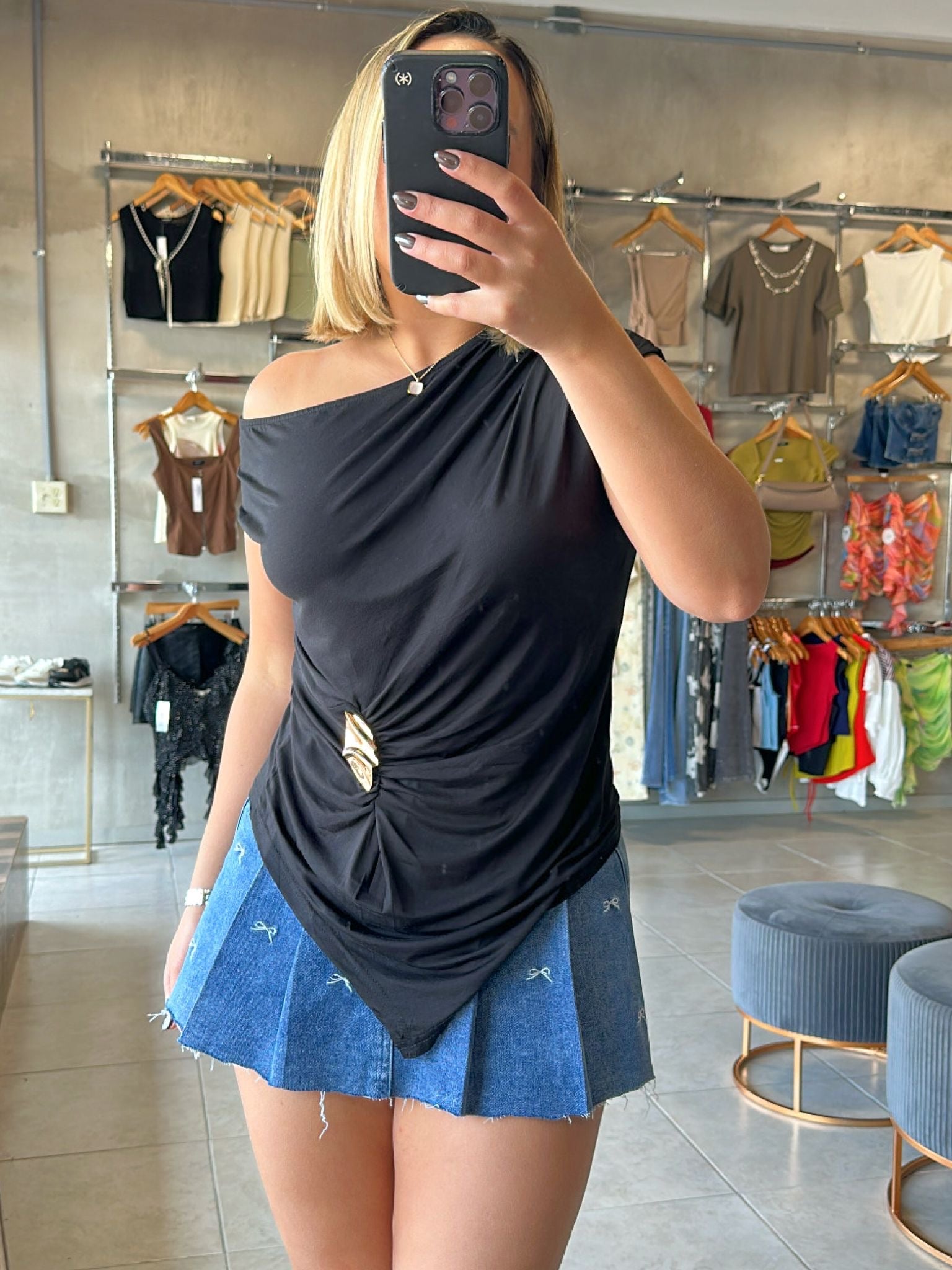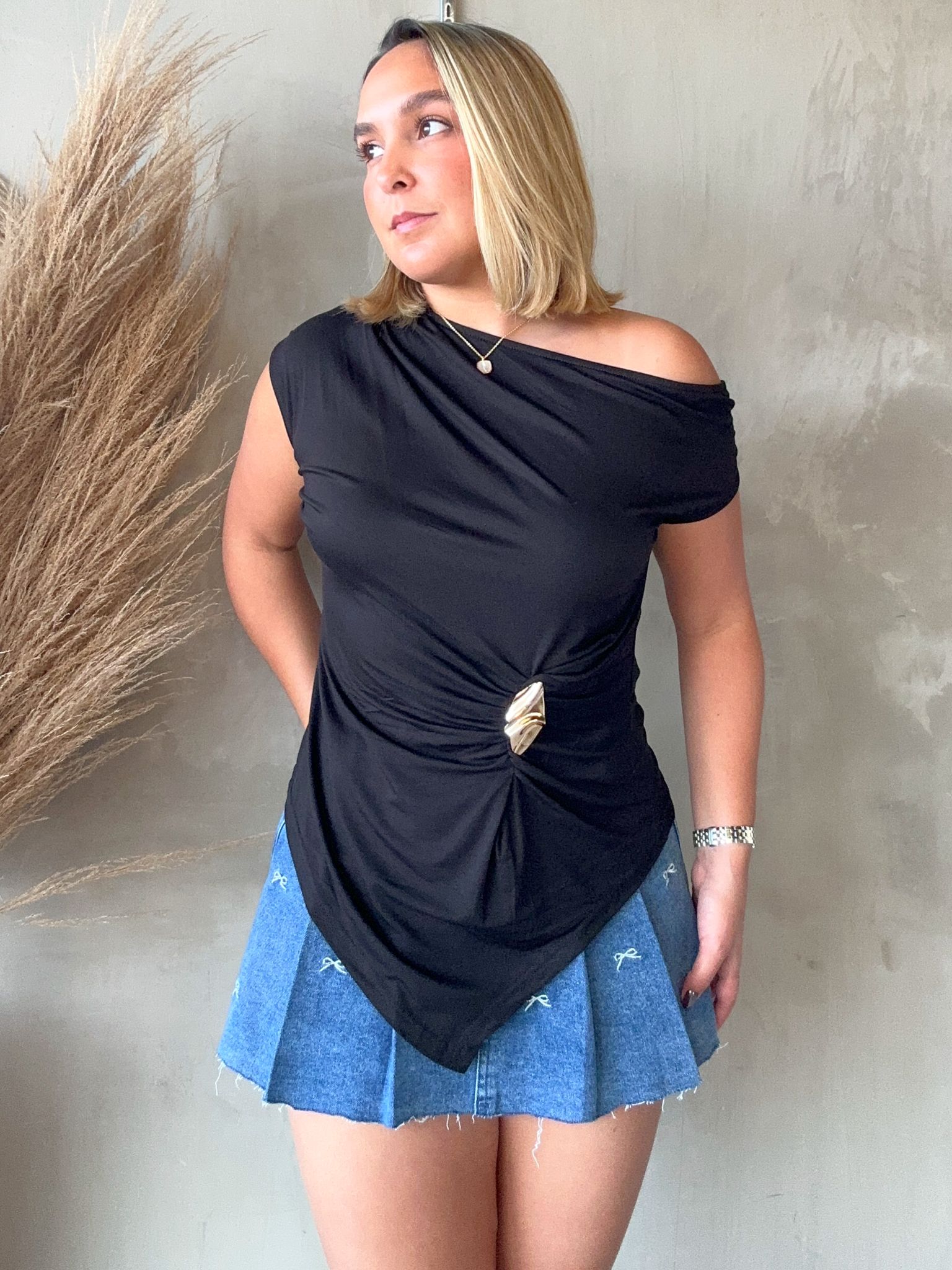 Lenni Black One Shoulder Top