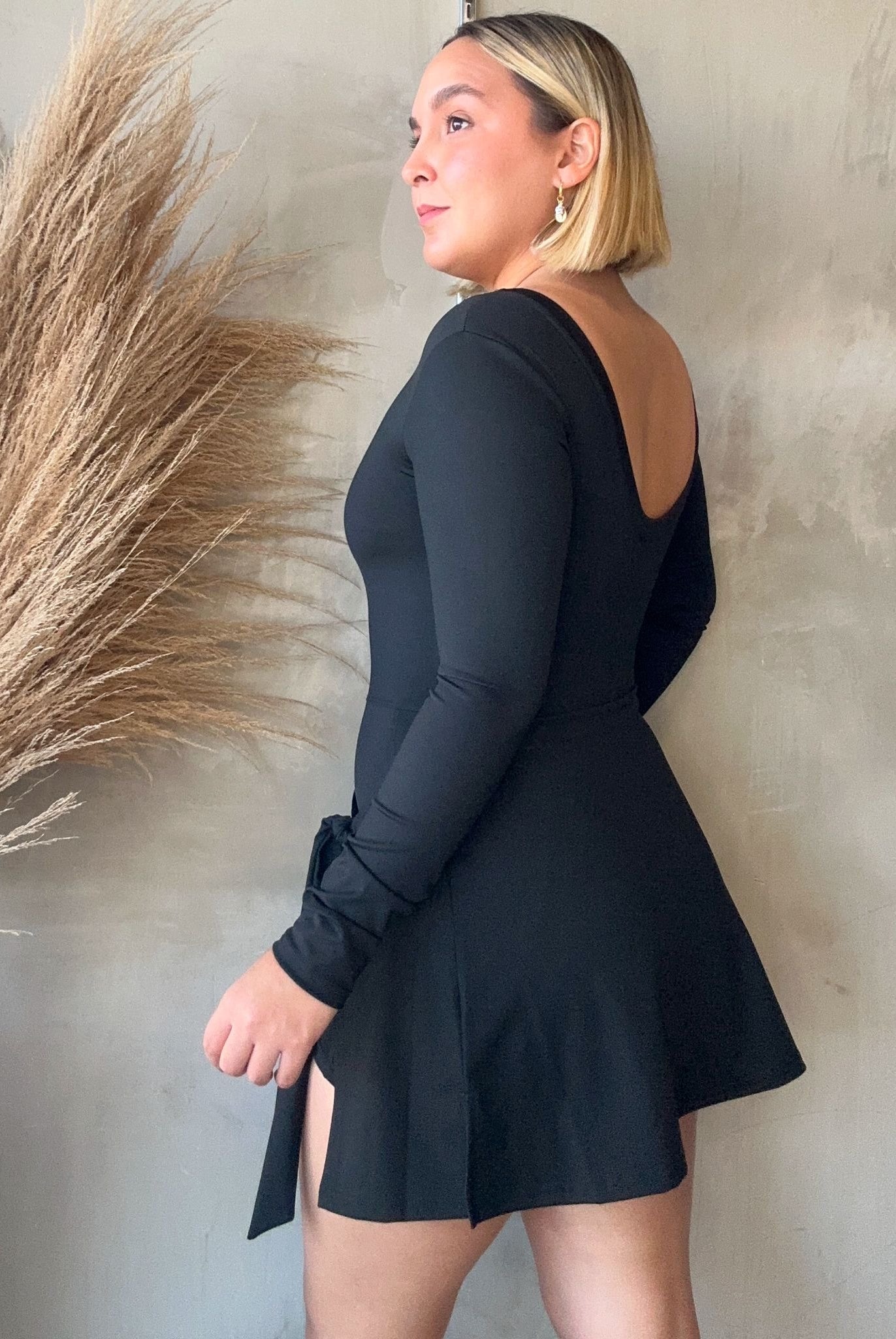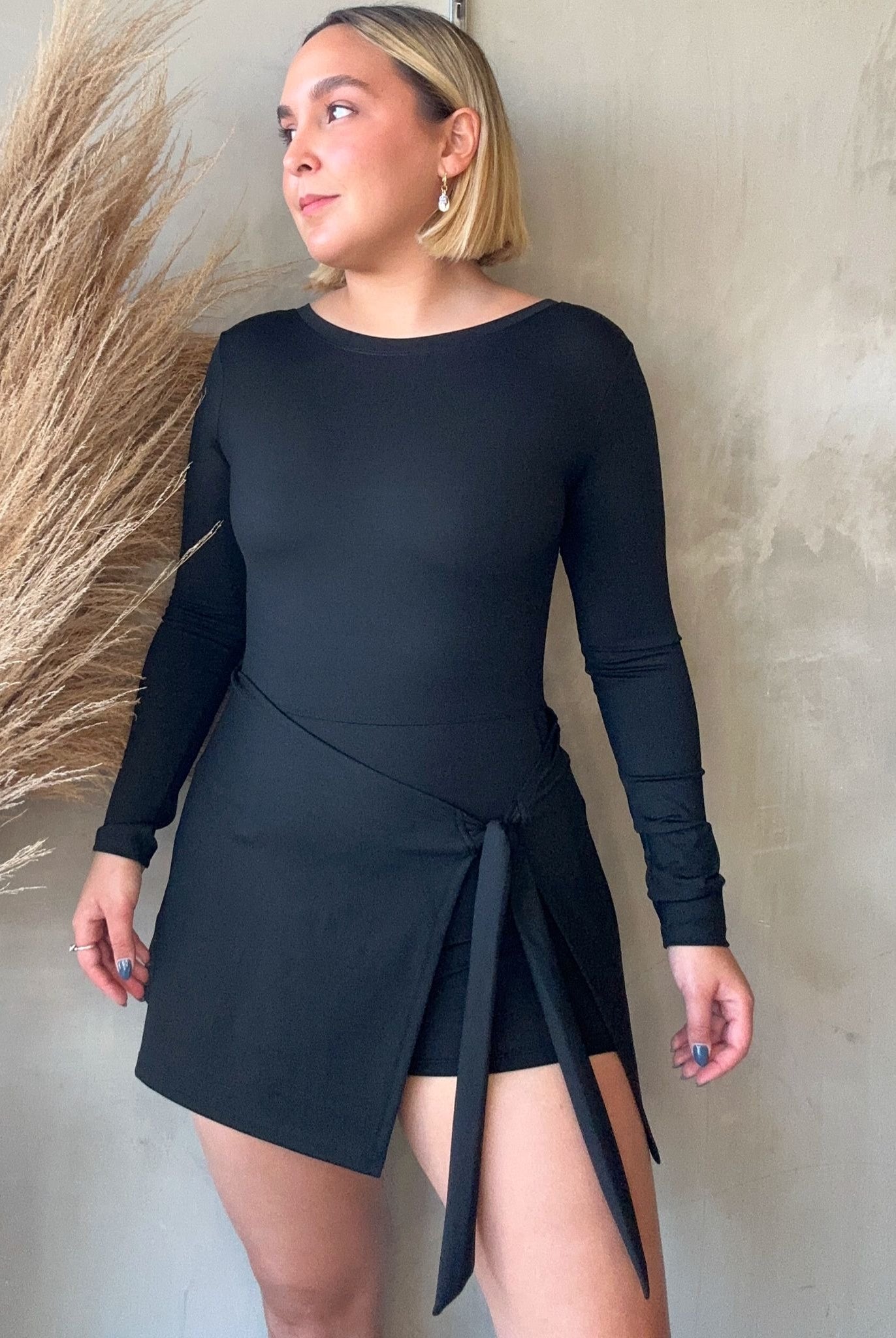 Aryna Black Long Sleeve Active Dress