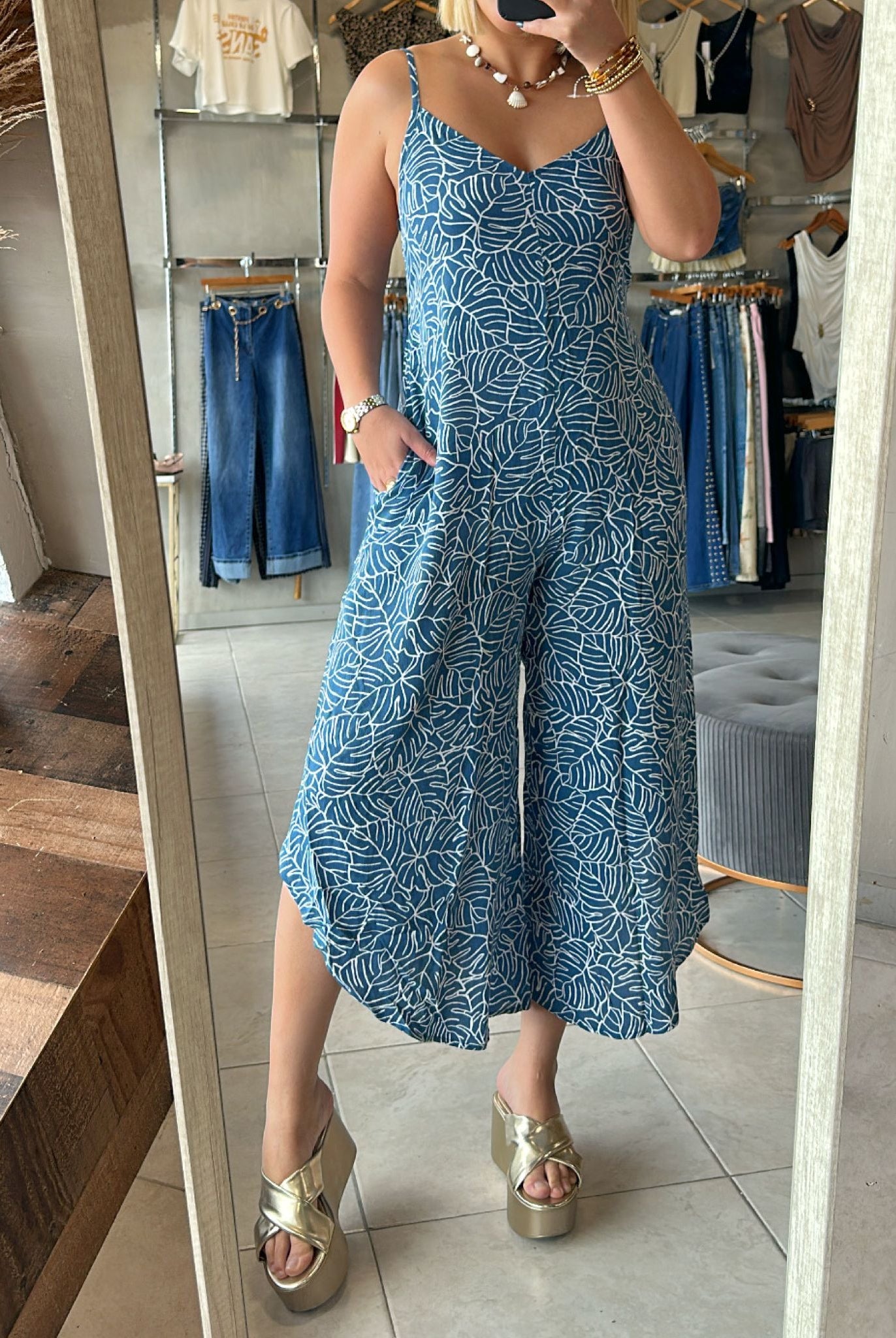 Kami Leaf Print Jumpsuit